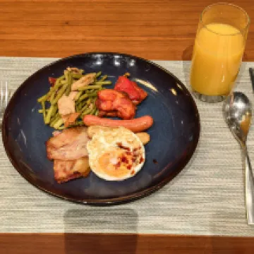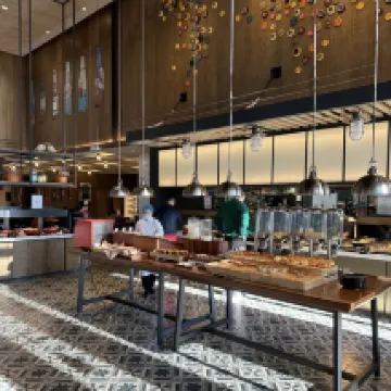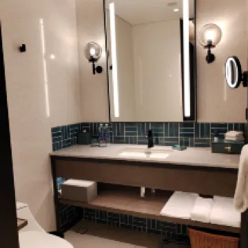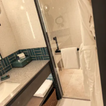 房間給了我極大的驚喜。佈局合理,採光極佳,床鋪鬆軟舒適,就像睡在雲朵上一般,每晚都能讓我快速進入甜美的夢鄉。房間內配備的書桌、沙發等一應俱全,辦公休閑兩不誤,而且插座位置設計巧妙,完全不用擔心電子設備電量不足的問題。衞生間乾淨整潔,淋浴噴頭水壓穩定,熱水即開即有,洗浴用品品質上乘,散發著宜人的香氣,使用後肌膚都變得水潤潤的。早餐還是在旁邊的萬豪酒店用餐,早餐豐富,還有三文魚。帶了長者一起出行,酒店還給延遲到下午三點退房。