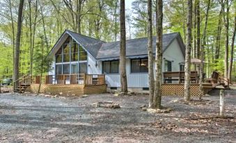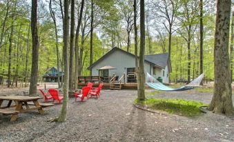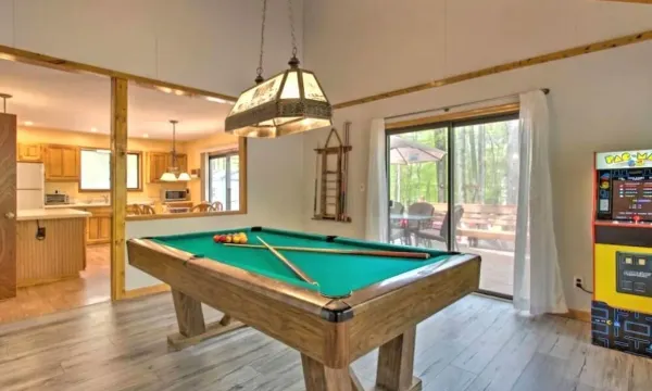 Located in the Locust Lake Village community, this 3 bedroom, 2 full bathroom home (with bonus loft) is a 5 minute walk to the lake and comes equipped with a wood-burning fireplace, pool table, arcade games, 2 Kayaks, and a backyard that's perfect for relaxing on crisp fall nights. Whether you're looking to relax on the hammock, roast marshmallows around the firepit, or walk to the lake, this beautiful cozy Pocono cabin has the vibe you are searching for!