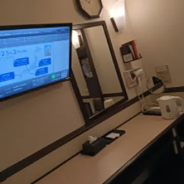 房間很乾淨,而且包含早餐,這點很棒。不知什麼原因,我沒能在那裡用餐,不過電視上顯示的菜單看起來很美味!如果拖鞋是一次性的就更好了。