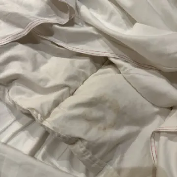 被子是有奇怪印記的 廁所是小的 每次沖水都能把人嚇醒 房間是很暗的 衹能大家説多注意了 臨走的時候還從洗手枱沖出來一個不知道多久的小牙膏 建議酒店還是一晚一晚預訂 不然沒住的是一點不肯讓你退