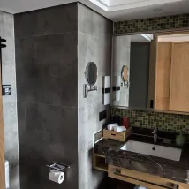 首先,房間設施標準比較高,床睡得很舒服,衞生間的用品是潘婷、舒膚佳、藍月亮、徠芬吹風機,花灑很舒服,還有智能馬桶和烘乾架,btw紙也很厚🤣 其次,從酒店大廳到房間,都能看出來有用心設計,細節滿滿!環境舒適優雅。早餐餐廳也很適宜,中式西式都有,味道也很不錯。 最後,工作人員服務態度都非常好,免費升房,溝通一下也能延遲退房,吃飯的時候微笑服務,點個贊👍可惜這麼好的酒店沒有開到外面去。
