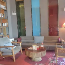 設施:個人比較喜歡此類複式房型,家庭、親子、朋友出行都比較適合,因為上下樓基本獨立不相互打擾。而且現代簡約的裝修風格也深合己意。 酒店的二層有公共會客區,其中長設飲品和小甜點。這是個不錯的設計,方便朋友小敍。酒店三層的早餐區也比較大,吃飯時並不擁擠。而且三層還有小菜園和户外座椅,天氣涼爽時納涼不錯。 衞生:沒發現什麼問題,比較乾淨。 環境:酒店周圍有大潤發和生活廣場,採購生活用品和吃飯較為方便。 服務:服務人員態度都挺好的。 早餐也不錯,但入住兩天餐品基本完全一樣。如果每天菜品能替換一些,就會顯得花樣更豐富。