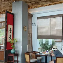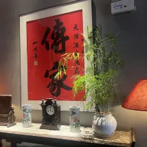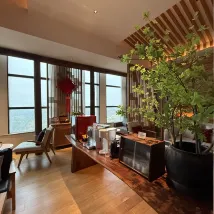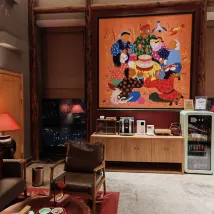 酒店地理位置很好,就在萬達的大潤發上面,停車位非常多,而且住酒店是免費停車的。 定的是LOFT,上下兩層,各有一張大床,裝修得沉靜雅緻。早餐空間也是竹木風格,配以三彩與書法,適合安靜吃飯。吃完才發現旁邊還有大長桌,可以舉行個小型的Party,還有一個老舊物件與書法的展示區。 要是上下層都有衞生間,那就可以打滿分了! 小孩對這家酒店非常滿意,説下次來了還要住這家!