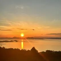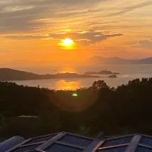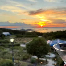 我們到達時正好趕上日落,還送了一杯迎賓香檳。 從我們的房間和露天浴池都能欣賞到令人驚嘆的日落和海景,地理位置真是太棒了。 這家旅館似乎是瀨戶內國際藝術節的舉辦地之一,但我們的時間安排不太適合。如果有機會,我很樂意再次入住這裡。
