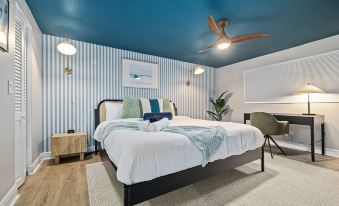 這棟房子設有 6 間精心設計的臥室,最多可容納 16 位房客,其中 5 間臥室配有 Roku 電視,可提供額外的娛樂設施。四間臥室均配備寬敞的特大床,讓您安享睡眠。其中一間臥室配備舒適的大床,最後一間臥室配備兩張單人雙層床。