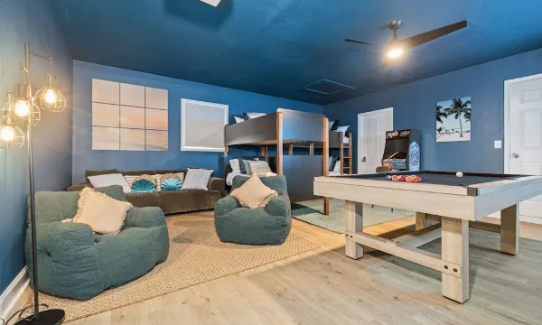 This home comfortably sleeps up to 16 guests across 6 thoughtfully designed bedrooms, 5 bedrooms have Roku TVs for added entertainment. Four of the bedrooms have spacious king beds for restful sleep. One bedrooms has cozy queen beds and the final bedroom has two sets of single bunk beds.
