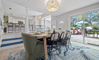 開放式廚房配備齊全的不銹鋼電器和炊具,可供多人用餐。相鄰的用餐區提供充足的座位,並與寬敞的家庭活動室相連,是共享美食和回憶的理想空間。