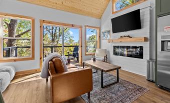 Relax on the deck with a recessed stock tank hot tub, surrounded by serene views of the woods, or gather around the electric fireplace for a cozy evening. Our fully stocked kitchen ensures you can enjoy home-cooked meals, and with fast WiFi, you can stay connected while you unwind.