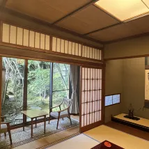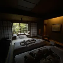 這是一家美麗的歷史酒店。傳統的房間非常寬敞,可以欣賞到精緻的日式花園景觀。附露天浴池的浴室令人嘆為觀止。我甚至可以在木質浴缸裡泡上一整天。房間裡的菜餚令人垂涎欲滴。他們姊妹飯店的私人浴室非常豪華。我唯一想改變的細節是,取消在酒店裡必須穿的難看的塑膠鞋。一切都如此奢華,以至於塑膠鞋與如此迷人的地方格格不入!