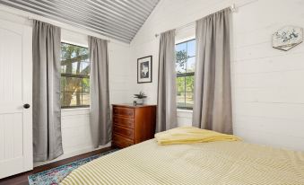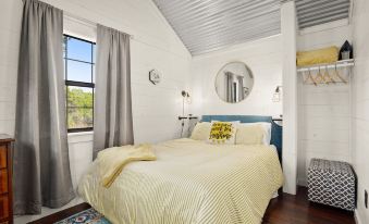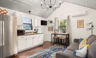 The George is located on a property with 3 other cabins. It features one king bed, kitchen, pullout couch, TV, AC, personal grilling & firepit area.