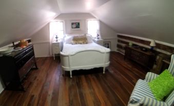 Second bedroom (upstairs): Full-size bed with a cozy, treehouse feel that’s perfect for children or an additional couple.