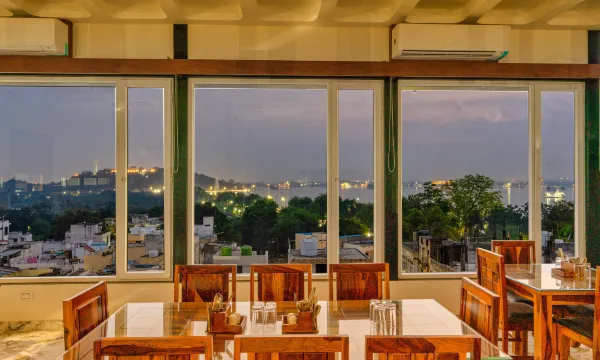 Beautiful property near fatehsagar lake with Lake facing rooms and mountain facing rooms. The rooms are very clean and hygienic. Staff is very friendly. Connectivity to all the places is very good from here. It is a very peaceful serene place yet not aloof from the city. Has an apple parking space. The cherry on the top is the rooftop infinity swimming pool which gives the view of fatehsagar lake and Neemuchmata hill. The food of its restaurant is really very tasty with lots of vegetarian options to choose from It's really safe place shall even travel like a solo traveler in future.
