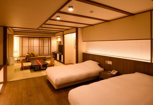 Our stay here was absolutely perfect, highlight of my trip. We got the suite and it was amazing, it was newly renovated so everything was clean and shiny, I thought it looked way better than the pictures so I would highly recommend it. The private in room onsen was fantastic, just made it so much easier to onsen whenever you feel like it. The onsen water was also absolutely amazing, had the slightest tinge of sulfur so you know you're getting the real deal. I must have went in at least 5 separate times cause it felt so good. The floor felt like real wood and there were fresh cut flowers in the room. The public onsen was also very good, at least the yin yang one has a cold water basin so you can alternate dipping in and out which was fantastic, the massage chair was also really good. Food was of the highest quality, very delicious. We got the fugu menu and it was very nice. Had a lot of fugu. Also tried horse sashimi! Staff were very friendly and polite. We felt pampered on our trip. It is slightly out of the way but taking the regional train on the last leg did feel pretty neat and authentic. I was so sad to leave, wish I could visit again. Feels like 7 or 8 out of 5, such a nice place.