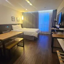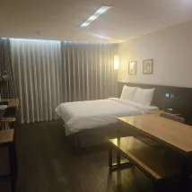 호텔 내부는 보통이었고 화장실 내 전등이 왔다갔다하는 소리에 신경이 거슬렸습니다. 또한 프론트에 계신 직원분이 업무에 미숙하여 불친절함을 경험하였습니다.