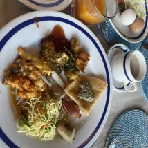 Отель очень понравился. Находится в отдалении от шумной улицы , в живописном месте. Наш номер был с видом на океан и это главный плюс. Персонал очень приветливый. Завтраки вкусные . Не далеко от отеля есть кафе Лемонграсс в котором мы почти всегда ужинали. Порции огромные, цены не высокие. Когда в отеле был заявлен вечером буфет , мы ужинали в отеле. Тоже очень все вкусно . Познакомились с местным жителем ****, который возил нас на тук-туке на достопримечательности. Хорошо говорит на русском, английском и итальянском языках. Не просто возит , а рассказывает о достопримечательностях на которые едем. Отвечает в WhatsApp по номеру ************