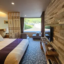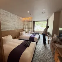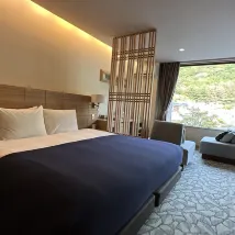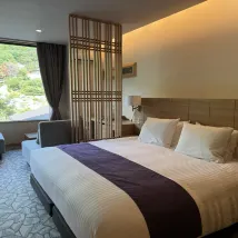疫情間重新裝修過房間太美了。每間都有私湯和露枱面對雲仙地獄。服務超好迷你吧免費冰棍免費club lounge免費。私湯是硫磺泉活水很舒服。乞丐房都有62平!
