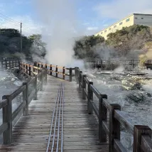 雲仙九州温泉酒店坐落在雲仙地獄的中心,在房間裏能非常清楚地看到地獄的景色,酒店沒有公湯,每個房間都有私湯,邊泡湯邊看地獄景色真的十分愜意。房間比較大各種設施也比較齊全,酒店下午3:00以後在二樓和五樓免費提供下午茶和咖啡等飲料。訂的是一泊二宿,早餐和晚餐應該也還可以。