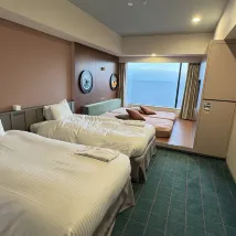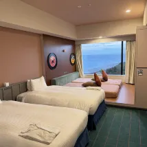 非常適合家庭親子,公共區域也很友善,對兒童的環境也友善,房間很大,有接駁車,但如果要找餐廳吃飯,建議做接駁出去賣場吃飯,建議飯店的日式桌椅可以更換一下,已經有點破損。