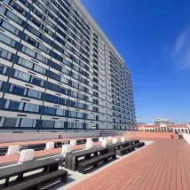 酒店有專車到新浦安和迪士尼。餐廳有節日佈置,有免費熱水和餐具,還有很多小朋友的睡衣和。樓下有羅森。靠近海邊很舒服。附近步行10分左右有大超市和壽司郎