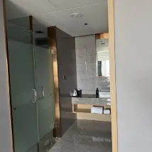 衞生:被罩上有根很長的頭髮,比我頭髮長兩倍多,不知道是保潔人員的還是上一位客人的 設施:洗漱用品刮鬍刀我一打開盒子就是被人撕開過的,全部原封不動放回去了沒敢用;總控管不了電視,電視遙控器又要藏在盒子裏,我凌晨一點多到的酒店,又花費了一些時間找遙控器去關電視,我覺得一個遙控器而已不用這麼有儀式感,更多的還是注重衞生和體驗感 服務:服務還是可以的,説是為我升級了房型