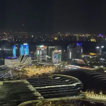 房間很小,但是該有的還是有。 有一個小小的窗户。 浴室的水容易溢到房間裏。 最惱火的是電梯,基本上要等十分鐘才能坐上。 點的外賣要去46樓拿,一上一下二十分鐘沒了…… 46樓的風景還可以。
