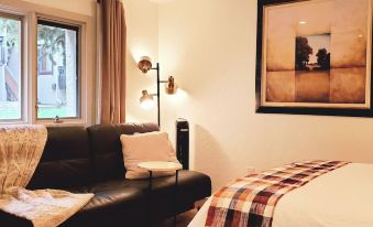 Stretch your legs out on the Queen sized bed (new in 2016) or the futon. I provide a 40' flat screen Smart TV with the standard You Tube TV, Netflix, Prime, Pandora, and so much more. Dining is at the bar in the kitchen. My kitchen is fully equipped with dishwasher, garbage disposal, stove top, oven, microwave and refrigerator with freezer. It is also stocked with dishes and coffee cups that are a service for 8. Wine glasses, silverware, towels, pot holders, paper towels, cooking utensils, knives, toaster, blender, crock pot and Gotham Steele pots and pans. The coffee machine is auto drip coffee maker takes round filters. It is a standard 8 cup auto drip coffee maker and again takes round paper filters.