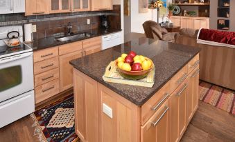 Conveniently comfortable and cozily charming. This naturally bright and airy home away from home extends a warm welcome to vacationers new to the Vail Valley. The ‘red carpet’ is rolled out, but in this case it’s a combination of colorful sectionals and plush area rugs. You’ll feel well take care of here. It’s rustic radiance is displayed in the touches of colorful artwork, the tiled hearth gas fireplace and collection of pine cones and decorative gourds on the dining room table centerpiece.