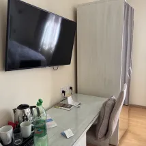 Colazione buona rapporto qualita’/prezzo con salato e dolce a buffet; molto carina la sala e l’ingresso arredate con stile e gusto; piscina piccolissima e poco usufruibile perche’ non ospita piu di 6 persone (non si puo’ nuotare, serve solo per rinfrescarsi), bello pero’ il tetto e il panorama; la posizione centralissima con un bellissimo panorama a pochi metri); abbiamo avuto un problema con l’aria condizionata troppo rumorosa e con un flusso di aria troppo forte che purtroppo non abbiamo potuto regolare a causa del sistema vecchio; essendo l’hotel pieno, non hanno potuto risolvere il problema cambiandoci stanza
