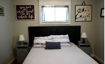 The home is on a quiet street with a spacious back yard, equipped with a fire pit, table, and chairs. Inside the home is a full kitchen( stove, dishwasher, full size fridge, & cooking utensils), 2 bedrooms (1 queen + 2 double beds), 2 bath (shower), that sleeps 5 guests. Wi-Fi available. Come stay with us!About pets:Pets allowed: dogs less than 50 lbs per pet (limit one pet total).About checkOut:Check out before 10:00 AM.About children:Children allowed: ages 0-17.About checkIn:Check in after 3:00 PM.About smoking:Smoking is not permitted.About minBookingAge:Minimum age to rent: 21.About events:No events allowed.