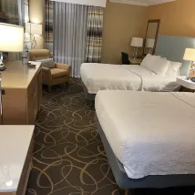 出差訂過幾次美國的suites都很棒!這次住的温哥華的,我認為他們的房間服務衞生可以説是做得相當到位的!每次遇到的希爾頓suites的工作人員都相當的專業服務態度好!市中心走路5分鐘,旁邊2分鐘有一家delicious pho,還有一家麥當勞,走路5分鐘有一家711裏面居然有泡麪,住的很踏實,很安靜!