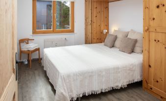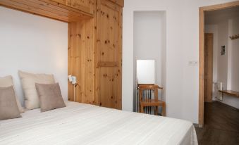 Apartment block "Galaxie", 4 storeys. 20 apartments in the residence. In the resort 300 m from the centre of la station, in a quiet position. In the house: lift, storage room for skis, central heating system. Motor access to the house. Parking (limited number of spaces), public parking 800 m. Shop 300 m, supermarket, restaurant, bar 300 m, bus stop "Praz Michaud" 200 m, indoor swimming pool 800 m. Golf course (18 hole) 1.2 km, tennis 1 km, riding stable 1 km, sports centre 1 km, ski lift 1.2 km, chair lift 2.5 km, gondola lift 800 m, skisport facilities 1 km, ski school 1 km, ski-kindergarten 500 m, sled run 800 m. "Galaxie 110", 2-room apartment 35 m2 on 1st floor. Bright, practical and beautiful furnishings: living/dining room with 1 double sofabed (1 x 160 cm, length 200 cm), cable TV. Exit to the balcony. 1 room with 1 double bed (2 x 90 cm, length 200 cm). Exit to the balcony. Kitchenette (dishwasher, 4 ceramic glass hob hotplates, toaster, kettle, raclette grill, fondue Set (cheese)). Shower/WC. Small balcony. Balcony furniture. Beautiful view of the mountains. Facilities: hair dryer. Internet (WiFi, free). Please note: non-smoking house.