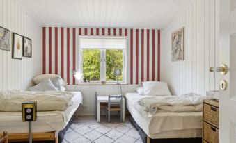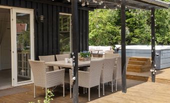 Single-family house, built in 1989. 860 m from the sea. Private: natural state property 1'294 m2. Outdoor shower, barbecue. In the house: washing machine. Parking at the house. E-charging station. Grocery 650 m. Golf course 1.3 km. The owner does not accept any youth groups. "Thorlak" - 860m from the sea", 4-room house 127 m2. Object suitable for 8 adults. Living room with TV. 1 room with 1 double bed. 1 room with 1 double bed. 1 room with 1 double bed. 1 room with 2 beds. Kitchen (oven, dishwasher, 4 ceramic glass hob hotplates, microwave, freezer). 2 showers/WC. Facilities: Internet (WiFi). Please note: non-smokers only. Maximum 2 pets/ dogs allowed. Bookings accepted for holiday purposes only. 376-27846