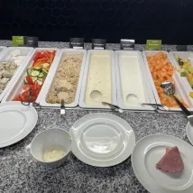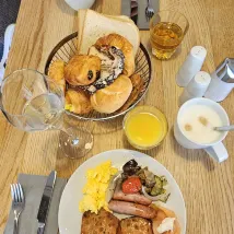 Breakfast was good with fruits, pastries, meat and coffee from machine.
