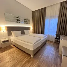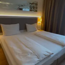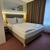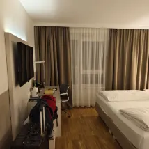 The check in and out was smooth with friendly staff. Room was large and clean. Bed was comfortable, air conditioned cold, water pressure strong and you get EUR5 rebate if you don't clean the room. An innovative way to save cost by the hotel yet they offer a small incentive as return.