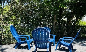 A cozy seating area is perfect for stargazing or relaxing outdoors. You and your furry friends can take long, scenic walks along the shore, and the bay beach is nearby.