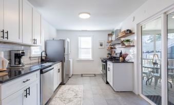 The modern kitchen is fully stocked, ready for you to whip up your favorite dishes.