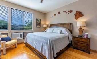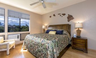 Our ground-floor, single level (no stairs inside), fully renovated 2-bedroom villa consists of a king sized master suite with walk-in closet, and a guest suite with two twin beds. Each bedroom has an attached en-suite and each living space has it's own Freidrich air conditioner and ceiling fan to keep cool (although, with windows and doors open, Maui's trade winds provide a more fragrant and desirable natural cooling).