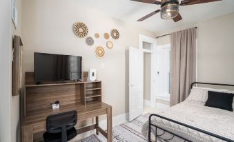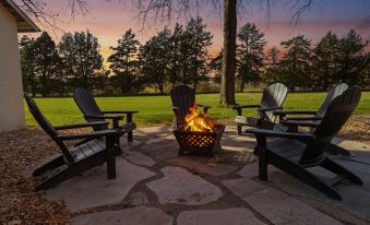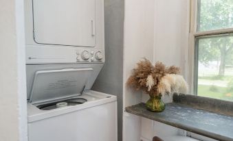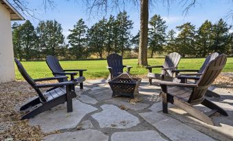 Come unwind in the second oldest homestead in KS, homesteaded in 1854. Enjoy the peace and quiet of the country, while still on the edge of bustling Lawrence. This home sits bordering the Wakarusa River and is walking distance to the Baker Wetlands. You’ll find the built in 1878 home fully furnished and newly renovated, perfect for larger groups all the way down to a solo traveler. Our homes main level features a bedroom with a queen size bed, and a full bathroom with a walk in shower, as well as a washer and dryer for guest use. There are three additional bedrooms upstairs, two with a king size bed, and one with a full size bed. The upstairs also has a full bathroom with heated flooring, a walk in shower as well as a soaking tub, and an office space found in bedroom 4. The front porch features two rocking chairs perfect to take in the tranquility of country living, as well as a table with two benches. The back patio features a table and four chairs along with string lighting for the perfect ambiance. We also have a wood fire pit available as well. If you’re more interested in exploring all Lawrence has to offer, there’s plenty to do nearby!