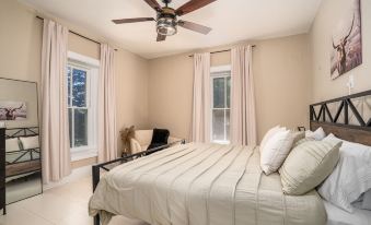 Guests have access to the main and upstairs level of the home via an automated lock at the back of the home. Access to basement and upstairs back porch is locked for storage purposes.About pets:No pets allowed.About checkOut:Check out before 10:00 AM.About children:Children allowed: ages 0-17.About checkIn:Check in after 4:00 PM.About smoking:Smoking is not permitted.About minBookingAge:Minimum age to rent: 21.About events:No events allowed.