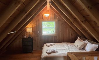 遠離城市的喧囂,在這間質樸的正宗小木屋裡享受片刻寧靜。坐在前廊欣賞池塘的私人景色,或步行 2 分鐘前往黃岸湖,在沙灘上閒逛和釣魚。