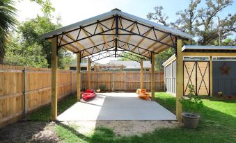 Bayou Grande Casita offers a fully remodeled oasis at the end of a cul-de-sac only one block from Bayou Grande, with covered boat parking, large backyard, a detached game room with ping pong, darts, TV, kayaks, bikes, and horseshoes. Enjoy the screened porch for coffee or after-dinner drinks, and the open floor plan for meals and relaxation with a chef's kitchen, including 75" smart TV and additional smart TVs in each bedroom. Ring cameras and floodlights are provided on the exterior only. We spared no expense so you could truly feel at home away from home, including super comfortable beds and sofa. Be our guest in the historic, waterfront community of Navy Point, with three miles of walking paths that weave along the waters' edge with swimming spots, sandy beaches, a public boat ramp, a playground, and where we gather together to watch the Blue Angels practice overhead and dolphin swim. 2 minutes from the Naval Base, 10 minutes to downtown Pensacola, and less than 20 minutes from the beach. Welcome!About pets:No pets allowed.About checkOut:Check out before 11:00 AM.About children:Children allowed: ages 13-17.About customRules:We do not allow parties, and have exterior cameras. Parties result in $500 fine. Please respect the neighbors. Thank you..About checkIn:Check in after 3:00 PM.About smoking:Smoking is not permitted.About minBookingAge:Minimum age to rent: 21.About events:No events allowed.