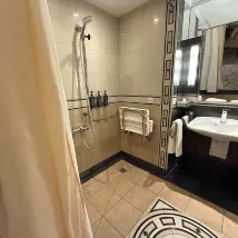 The bathroom décor shows the hotel’s age, but the room is spotless and well maintained. The gym is well equipped and in great condition. Overall, a very satisfying stay.
