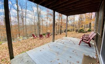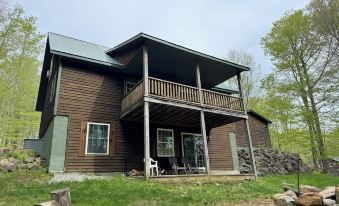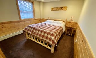 小屋設有五間臥室,主臥配有一張特大床和步入式衣櫥。樓上的臥室配有一張大床,對面的另一間臥室配有兩張單人床和一張滾輪床。樓下設有一間配有大床的臥室和另一間也配有一張單人床的臥室,最多可容納10位顧客。小屋還設有客廳和一間裝修完畢的步出式地下室,地下室內設有一間帶組合沙發的電視室。小屋內部溫馨宜人,非常適合歡聚、歡笑和放鬆身心。經典的多節松木牆壁、天花板和華麗的樺木欄桿為每個房間營造出阿迪朗達克魅力和舒適感。