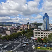 酒店地理位置挺好,到海邊走路就到,對面威高廣場吃飯購物方便,到機場的大巴和光車也在對面,到各地方打車方便,酒店服務特別好,熱情打招呼,服務員都很熱心,早餐特別好,酒店一看有老牌酒店氣質,設計有意思,房間翻新過,設施有在陸續更新,可以自助洗衣烘乾,健身房也可以,衞生打掃及時,床品乾淨舒適,住起來很舒服,這三天我和父母都睡得好,玩得好,下次來還會住這裏