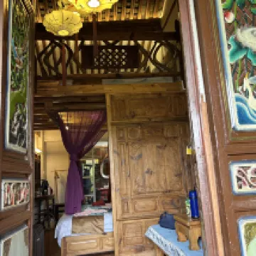1,房間木質結構,從一進屋開始,到晚上床上休息,以及在屋裡説話,走路,響聲不斷,一進屋服務服員就提醒,此房為老房子,不隔音,晚上記話,走路都要小聲,木質樓,像在做賊一樣,上床休息,木床不斷發出異響,無法入睡,自已都要把自己嚇醒,房間門又是木質門,衹要有人過上過下,開門響動,就發出異響,一點不隔音,完全無法睡,整個樓層就是過去老式木樓改建,容易引發火災。2,空調排水管居然安在房間裏面,用一瓦罐接水,隨時都要去倒空調水,要不然空調水就會滿出來,流一屋都是,因是木質樓房,還會流到樓下,服務員直接告知,7,8月分的天氣最好不要用空調,臨原熱一點,免得空調水滿出來流得滿屋,流下樓,3.屋內房頂是瓦片房頂,屋內潮濕陰暗,房頂上布蜘蛛網小蟲,入果我説的有假,各位遊客一住便知,我也沒必要亂説,衹給其他遊客提醒,。
