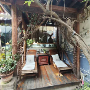 客棧裏面很朵花花草草,非常漂亮,好幾個茶室可以喝茶,我們住的一樓花園雙床房,樓上可能住了小孩,跳來跳去的,很吵,樓板不隔音,可能樓上的房間會更好住吧!