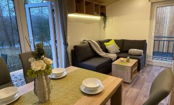 Resort "Campingpark Wemding". 50 houses in the resort. Outside the resort, 2 km from the centre of Wemding, 50 m from the lake. For shared use: slide, outdoor shower, beach volleyball, children's playground, bathing place. In the complex: WiFi, kiosk. 400 m long motor access to the house. Central parking spaces. Supermarket 2 km, restaurant 2 km, bus stop "Johannisgraben-Wemding" 2.2 km, railway station "Nördlingen" 20 km, thermal baths "Treuchtlingen" 21 km. Tennis 1 km, minigolf 50 m, riding stable 1 km, ice rink 500 m. Nearby attractions: Nördlingen / Rieskrater-Museum 19 km, Dinkelsbühl 43 km, Legoland Günzburg 80 km, Playmobil-FunPark bei Nürnberg 100 km, Augsburg 70 km, München 130 km. Well-known lakes can easily be reached: Altmühlsee 35 km, Brombachsee 40 km. Please note: suitable for families. Residence with electric gates. Access to the house only possible between 7 am and 10 pm. Dogs are not allowed on the beach and sunbathing lawn. Kiosk only open from mid may to mid september. "Tiny Haus Heike", 3-room mobile home 29 m2. Object suitable for 2 adults + 3 children. Cosy furnishings: living/sleeping room with 1 double sofabed (140 cm, length 200 cm), dining table and satellite TV (flat screen). Exit to the terrace. 1 room with 1 double bed (160 cm, length 200 cm). 1 room with 2 beds (80 cm, length 200 cm). Open kitchen (dishwasher, 2 ceramic glass hob hotplates, toaster, kettle, electric coffee machine). Shower/WC. Terrace. Terrace furniture. Facilities: Internet (WiFi, free). Please note: non-smokers only. Beach 30 m. Note: The Wi-Fi connection may be limited depending on weather conditions and capacity. 64304/12035