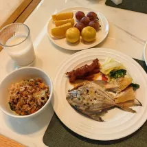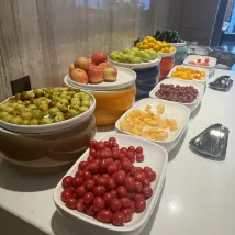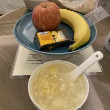 房間每天會提供小點心和水果,比如黑米粥、銀耳羹等。周邊有商場還是比較便捷的,銀泰的選擇還是很多的,步行的話10分鐘。就是枕頭如果有更多的選擇就好了,偏軟了些。另外早餐選擇也是比較豐富的。離温州南站非常近,10分鐘就可以到達。