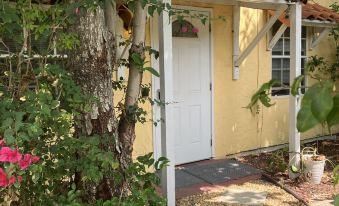 The guest cottage is fully detached from the main house on the property, offering complete privacy. Surrounded by beautiful tropical landscaping nestled under the shade of a 90 year old mango tree.