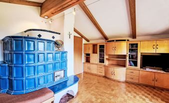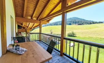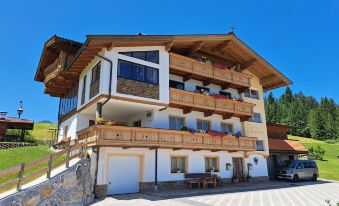 Haus BERGANGER enjoys a wonderful panoramic location at an altitude of approximately 1175 m, at the end of a dead-end road in the Thierbach-Außerthierbach district. It offers expansive views over the entire Wildschönau region, all the way to the Wilder Kaiser massif. Meadows and pastures surround the house. The nearest supermarket is 7 km away. The Wildschönau outdoor swimming pool is 8.6 km away. The Schatzbergbahn cable car in Auffach is 7 km away. The Thierbach Koglweg adventure hiking trail (approx. 8 km long) passes close to the house. Access is via a steep, winding mountain road (4.5 km). Winter information: Access is 4.5 km away via a steep, winding mountain road (snow chains may be required). Cross-country ski trails and winter walking paths in Thierbach are 1.2 km away. The ski school and the Schatzbergbahn valley station in Auffach are 7 km away (access to the Skijuwel Alpbachtal - Wildschönau ski area). Valley station of the Markbachjochbahn in Niederau 10 km. Apartment house "Berganger", 1'175 m a.s.l.. In the district of Thierbach-Ausserthierbach 1.2 km from the centre of Thierbach, 16 km from the centre of Wörgl, 32 km from the centre of Kufstein, 7 km from the skiing area, in a cul-de-sac. For shared use: property. 4.5 km long steep motor access. In Winter: please take snow chains. Parking on the premises. Supermarket 7 km, bus stop 100 m, railway station "Wörgl" 16 km, outdoor swimming pool 8.6 km. Golf course (18 hole) 38 km, mountain railway 11 km, ski lift 7 km, ski school 7 km, cross country ski track 1.2 km. Please note: the owner lives in the same residence. Animals in the neighbourhood. "Berganger Familienglück", 6-room apartment 150 m2. Beautiful furnishings: living room with satellite TV. Exit to the balcony. 1 room with 1 double bed. Exit to the balcony. 1 room with 2 beds. Exit to the balcony. Kitchen (oven, dishwasher, 4 ceramic glass hob hotplates, microwave, electric coffee machine) with dining table. Exit to the balcony. Shower, sep. WC, double hand-basin. Underfloor heating. On the lower ground floor: 2 double bedrooms. Kitchen-/living room (oven, 4 ceramic glass hob hotplates, microwave, freezer, electric coffee machine). Shower/WC. Wooden floors. Balcony. Panoramic view. Facilities: children's high chair. Internet (WiFi, free). Please note: non-smokers only. No internal connecting door between the separated properties.